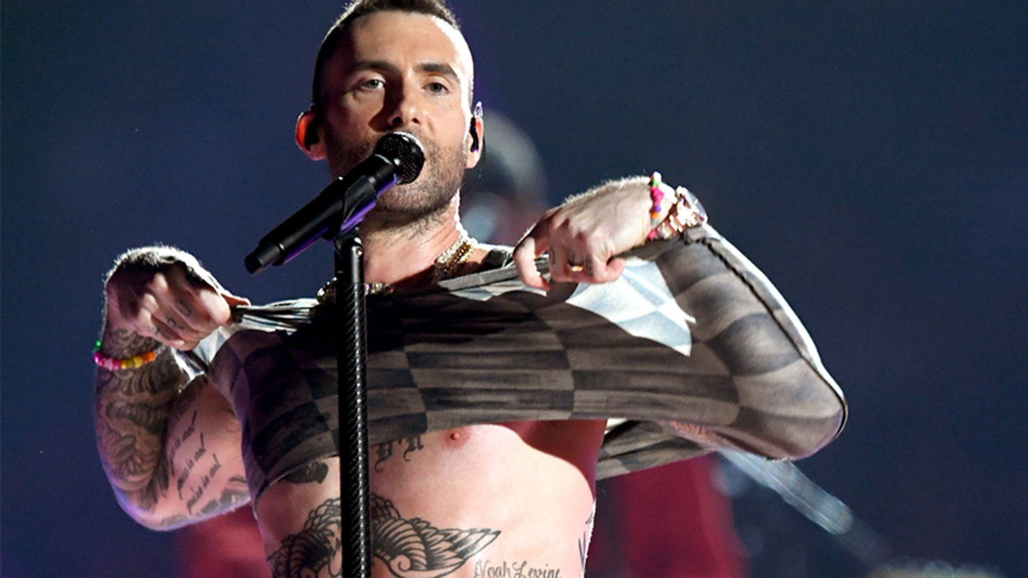 Adam Levine Shows His Painful Leg Tattoo